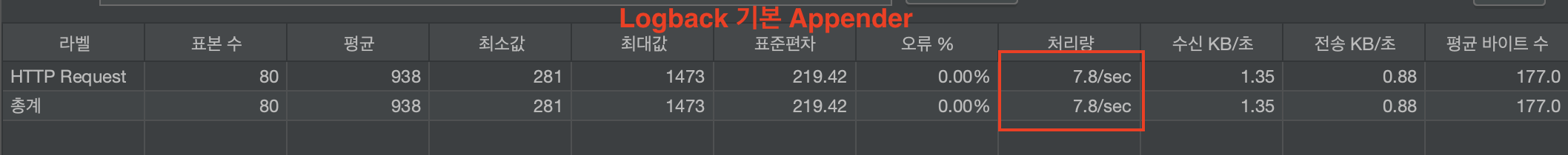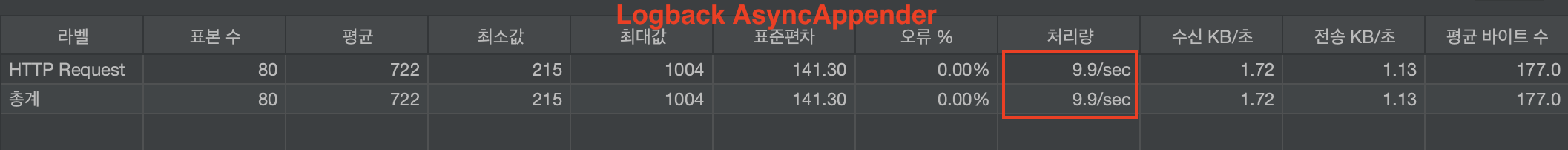 성능 측정 결과 AsynAppender가 약 1.3배 더 빠르게 기록되는 것을 확인할 수 있었다.