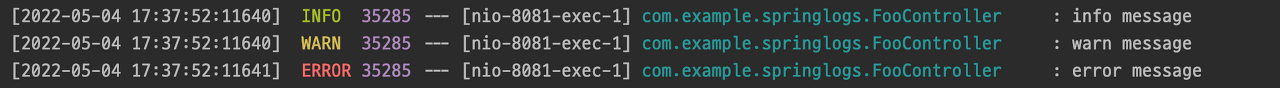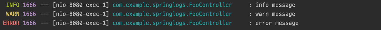 - %clr(pattern){color}: 로그 pattern을 %clr ~ {color}로 감싸주면 된다.