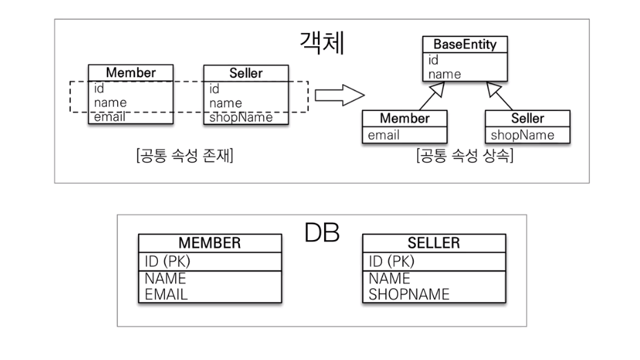 - DB 테이블과는 상관없다. 아래에 보면 DB는 매핑 정보 다 따로 쓰고 있다. 객체의 입장이다.