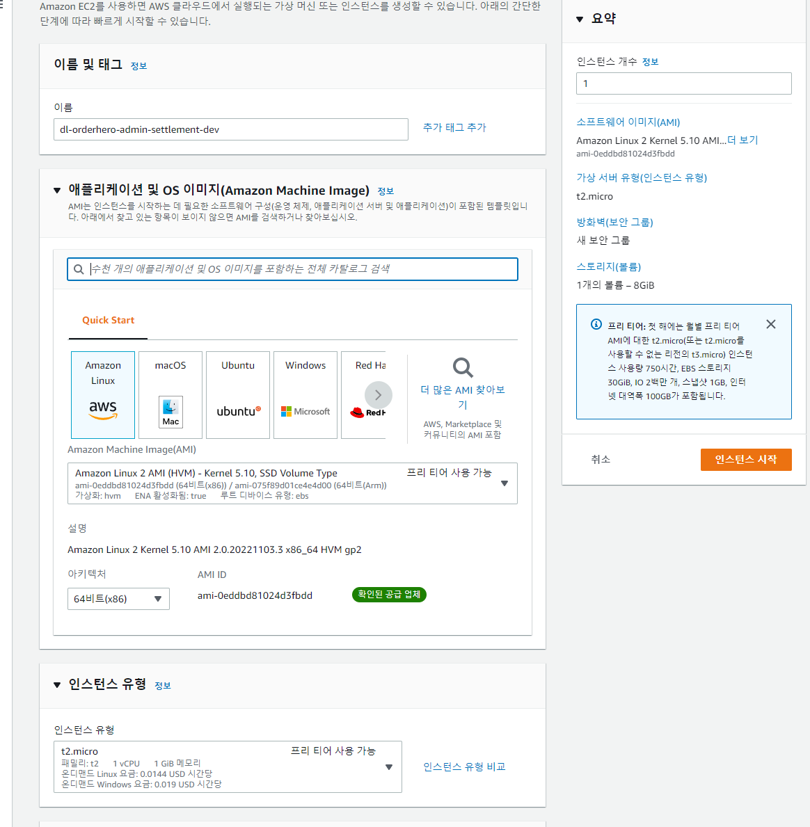 - Amazon Linux 선택
