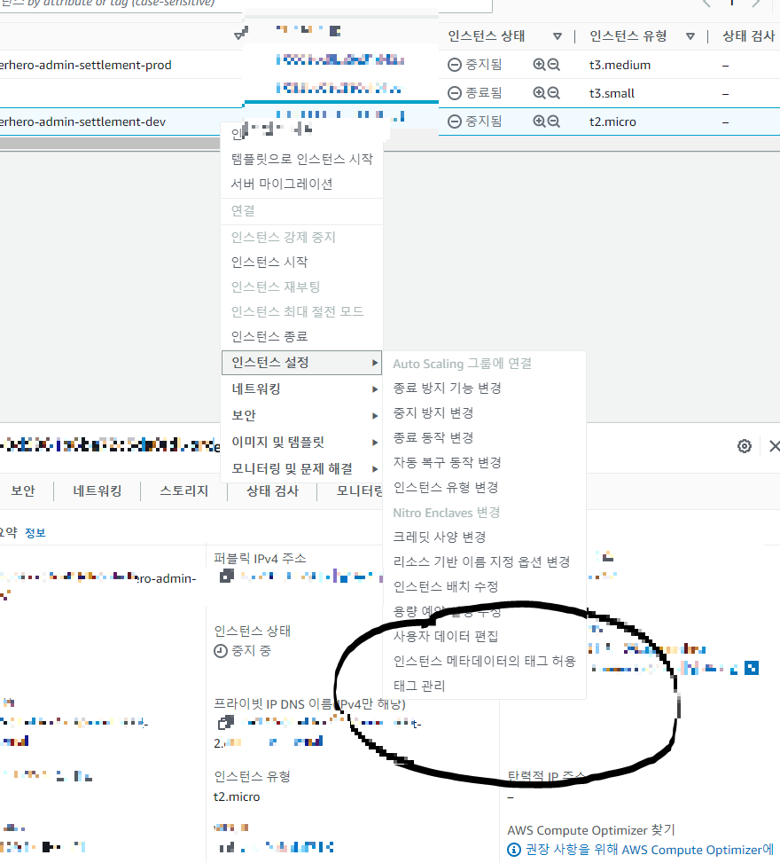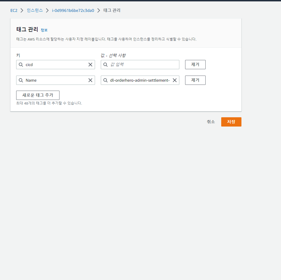 - 인스턴스에서 우클릭 한 후 태그 관리 클릭