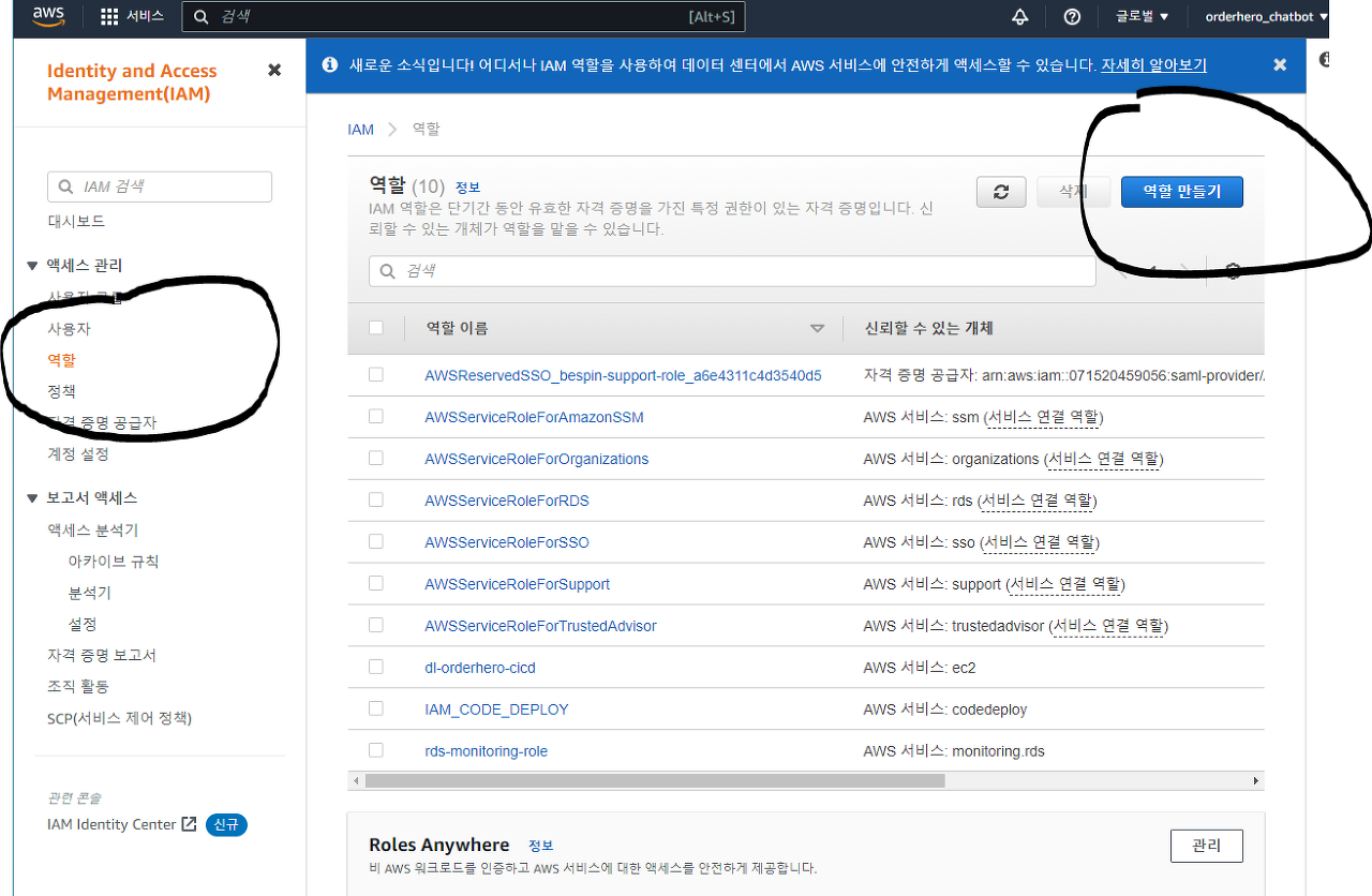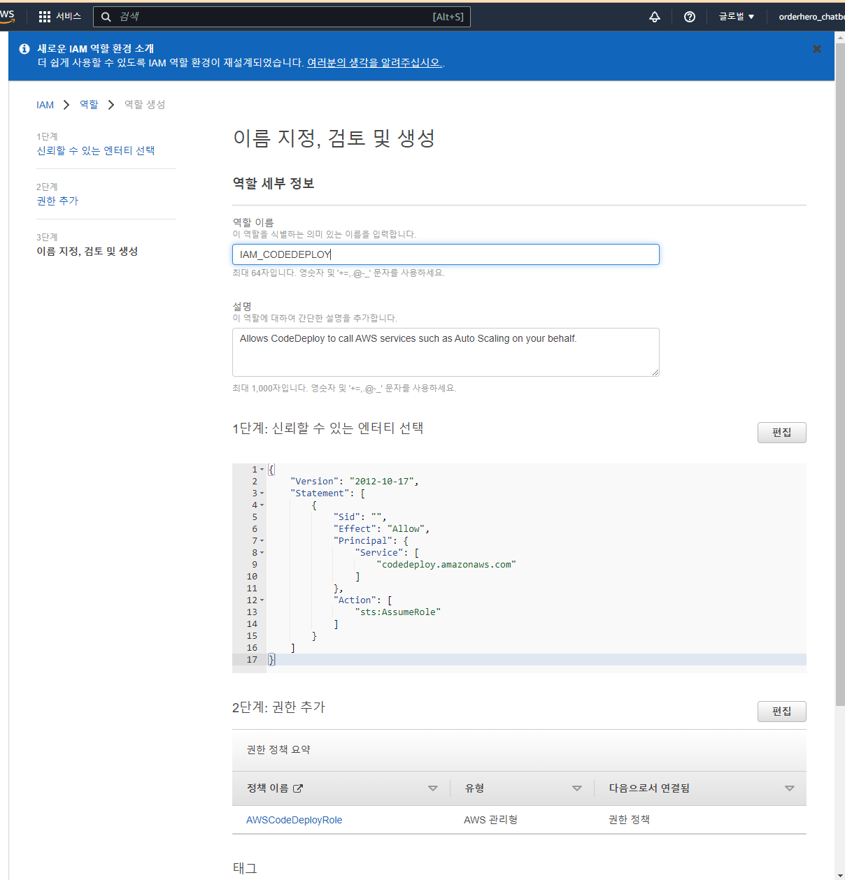 - 수정할 것 없이 역할 생성 클릭, 역할 생성 완료!