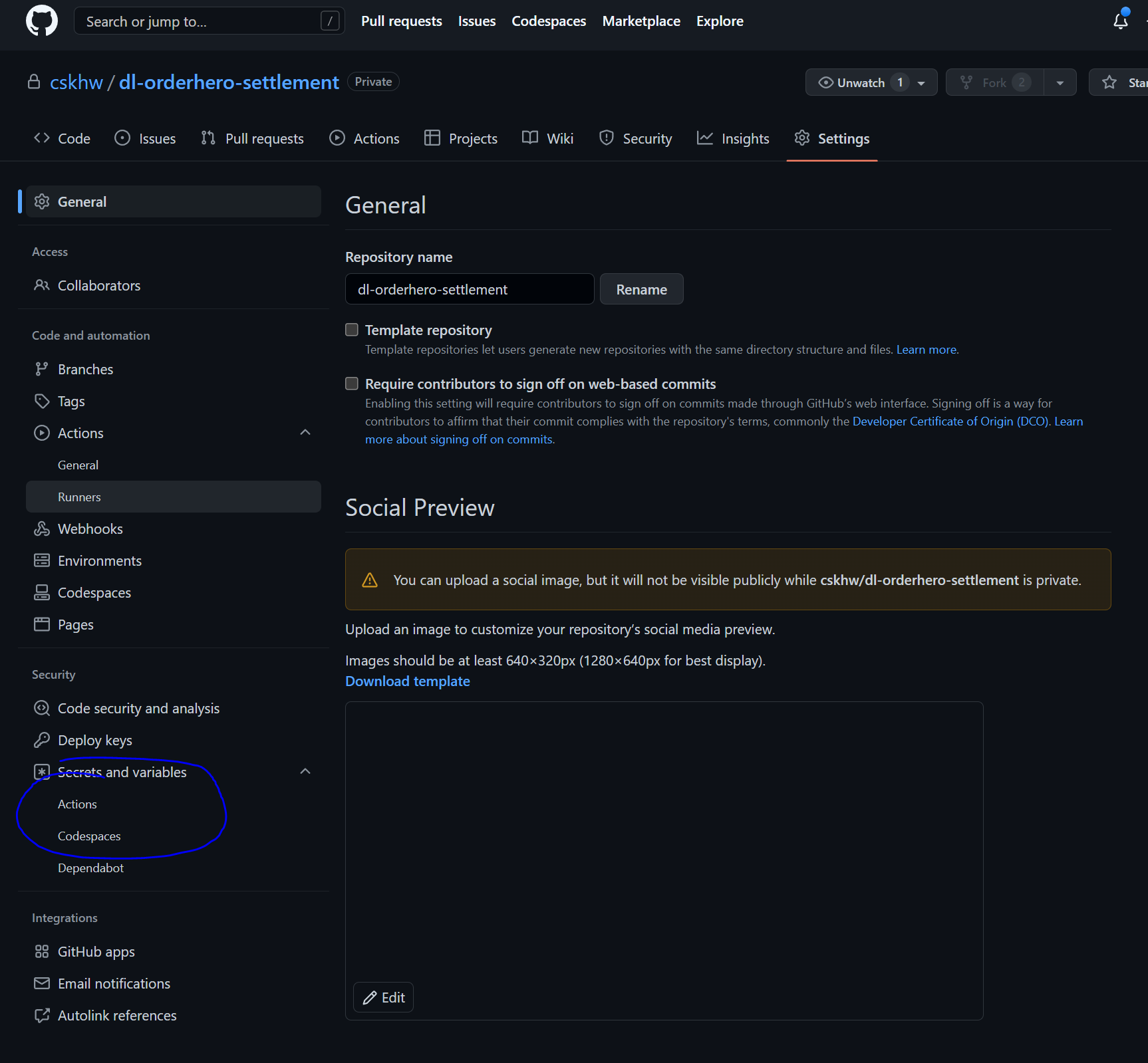 - 깃헙 레포지토리 홈페이지에서 settings > secrets and variables > actions 클릭