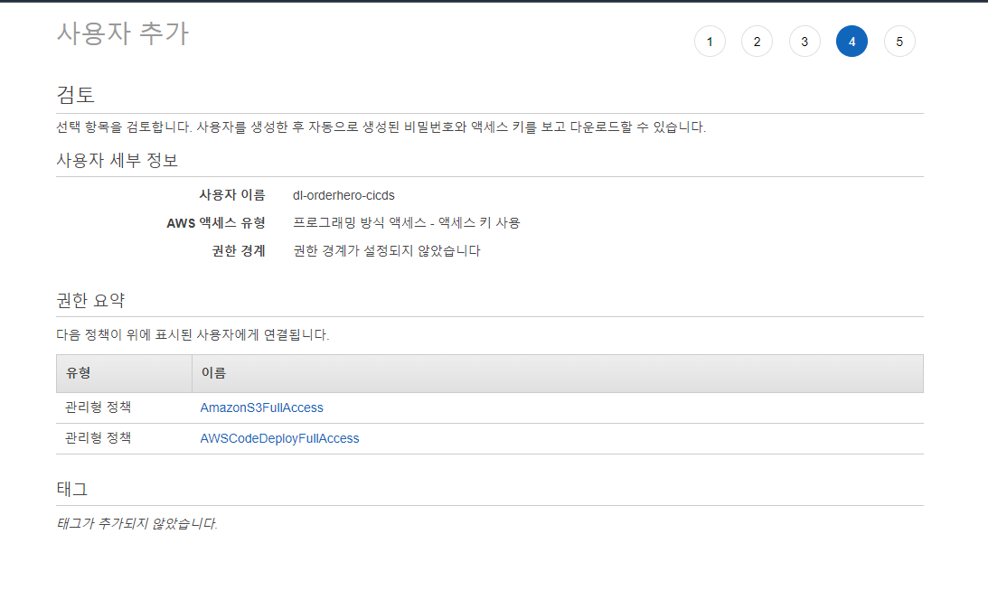 - 태그는 생성하지 않아도 됨, 다음: 검토 클릭