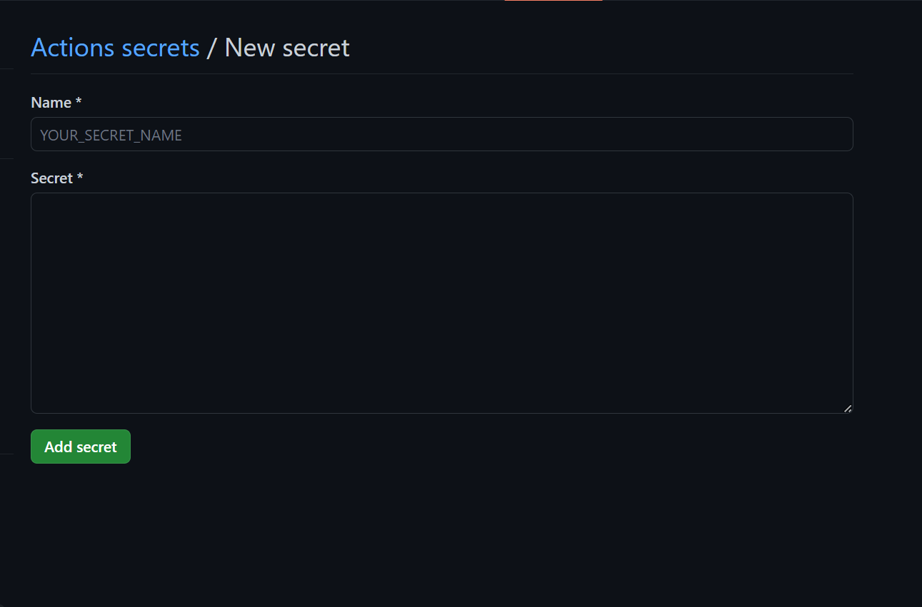 - New repository secret 클릭