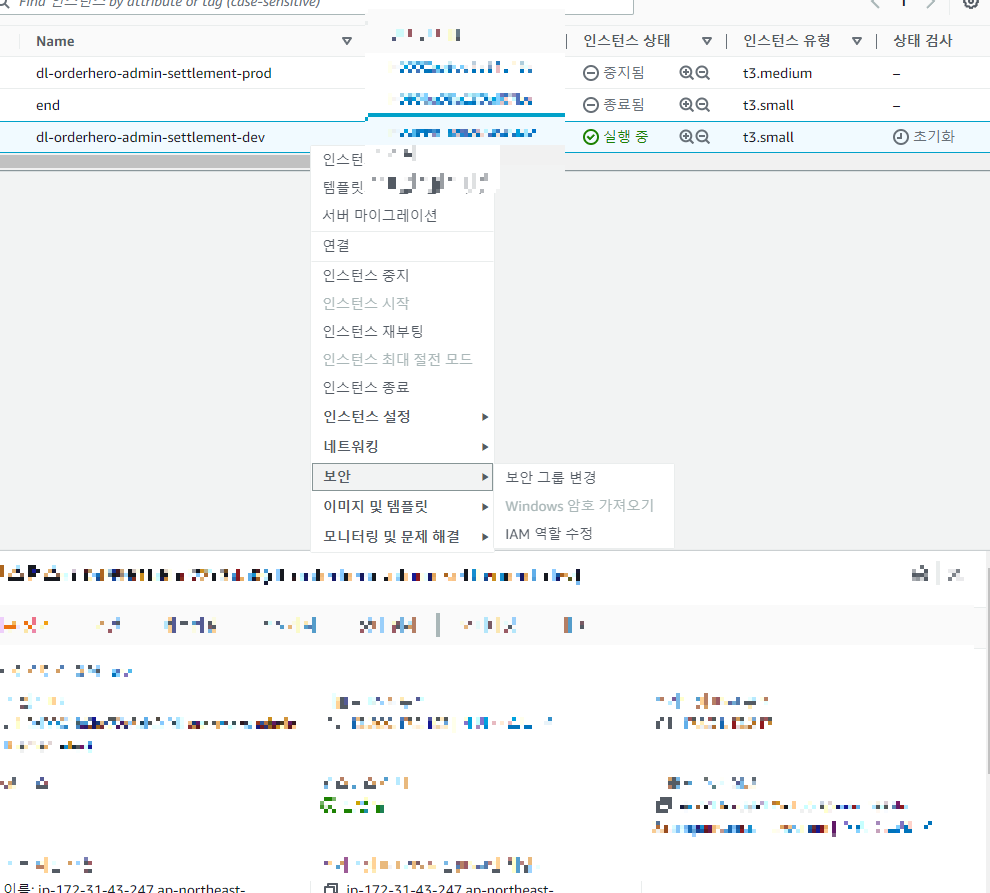 - instance에 우클릭 후 보안 → IAM 역할 수정 클릭