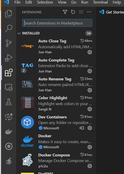 익스텐션 탭을 클릭한 후 아래 목록들을 검색해서 설치해줍니다.