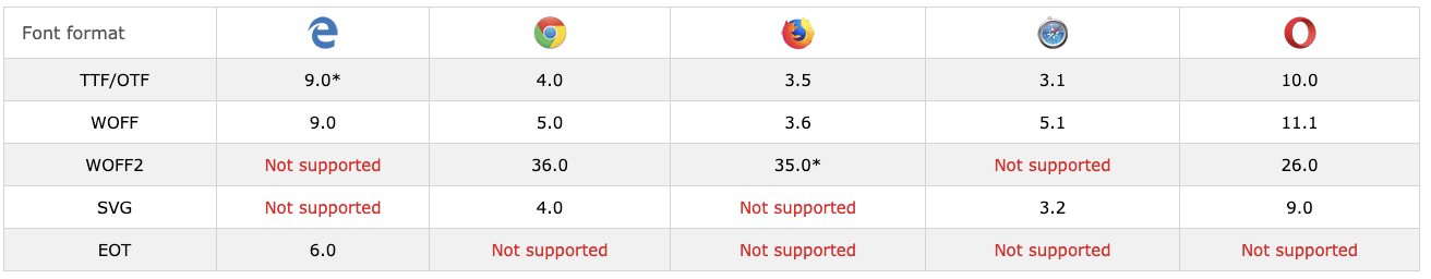 브라우저 별 웹폰트 지원 형식 - w3schoools.com