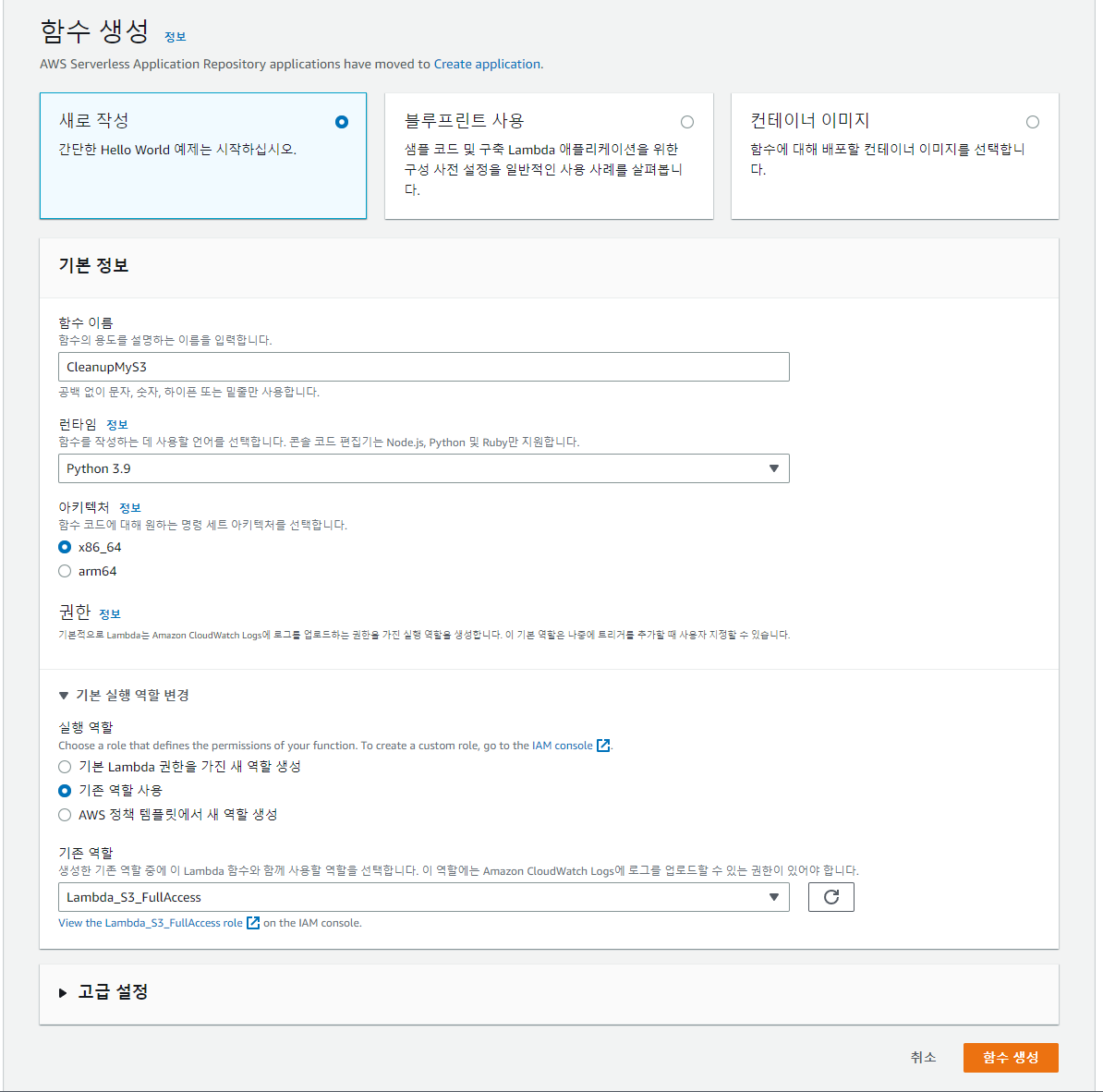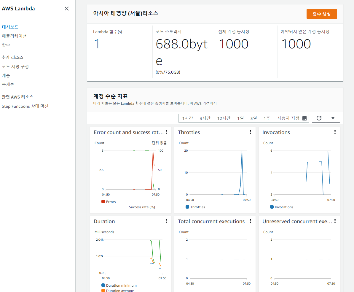 AWS 람다로 이동해서 함수 생성을 클릭한다.
