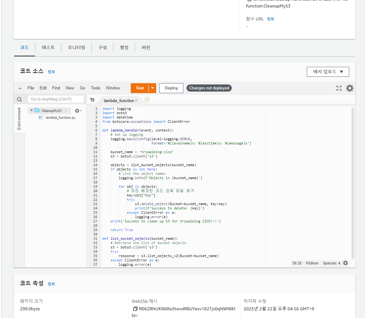 Github Actions를 이용해 S3에 배포된 코드 압축 파일은 용량만 차지할 뿐 정말 쓸모가 없다. 백업 용도로 사용하기에도 적합하지 않다. 게다가 배포가 자주 이뤄질 수록 차지하는 용량은 매우 커지기 때문에 매일 S3 객체를 비워서 비용을 아낄 필요가 있어 람다 함수를 만들게 되었다.