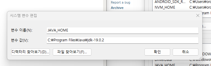 - 시스템 변수에 JAVA_HOME을 아래와 같이 설정