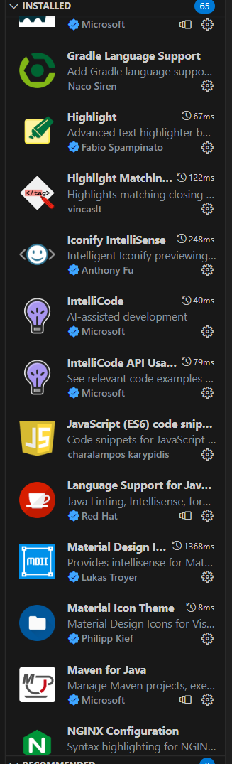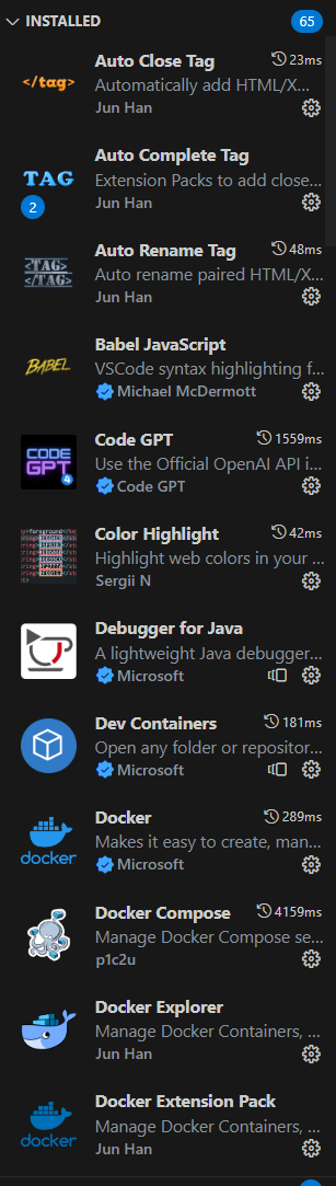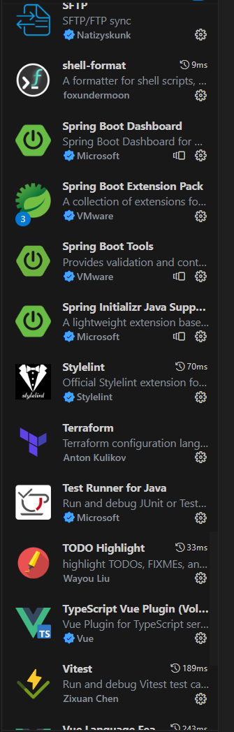 아 익스텐션 중 spring boot 와 Docker 등 필요한 익스텐션만 설치