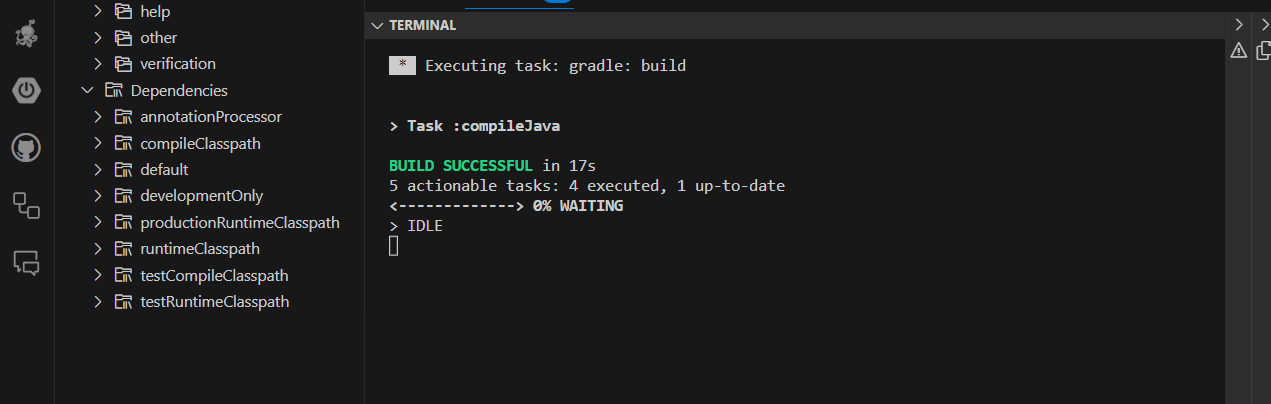 - 빌드가 완료되면 Tasks - build 탭에서 빌드 실행