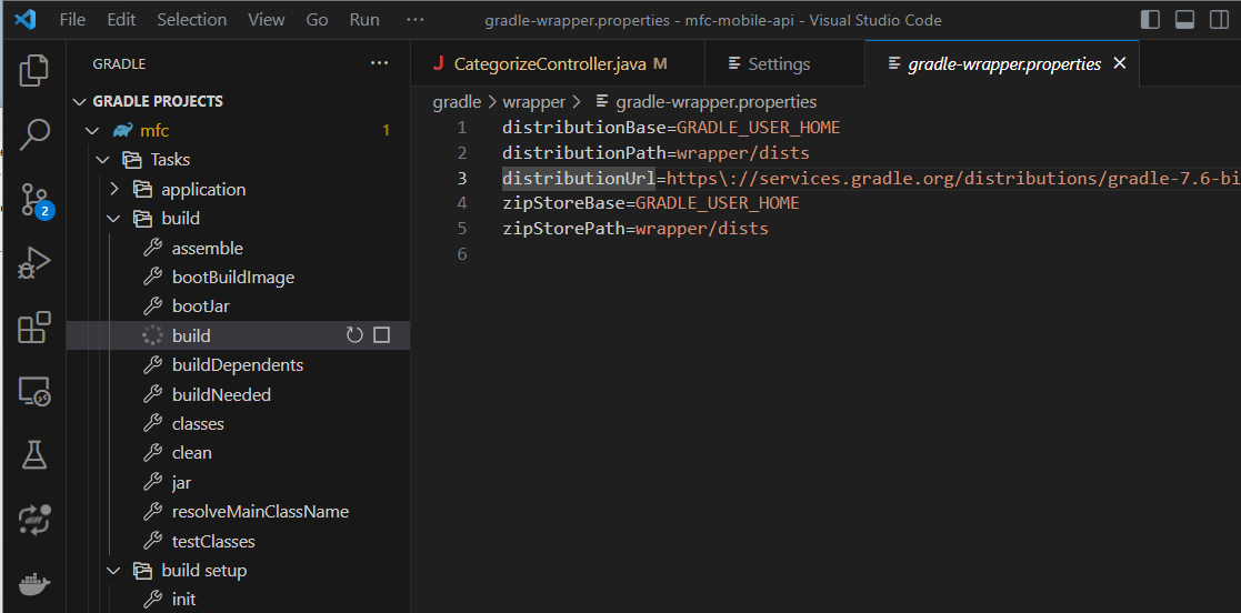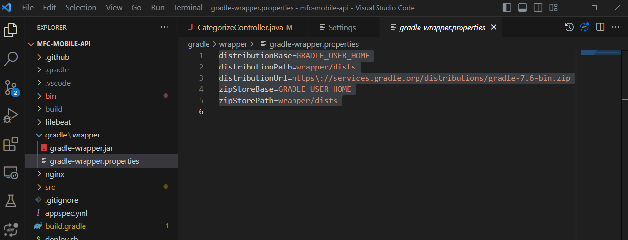 - gradle-wrapper.properties에 위 내용 복붙해서 그래들 버전 맞춰주기