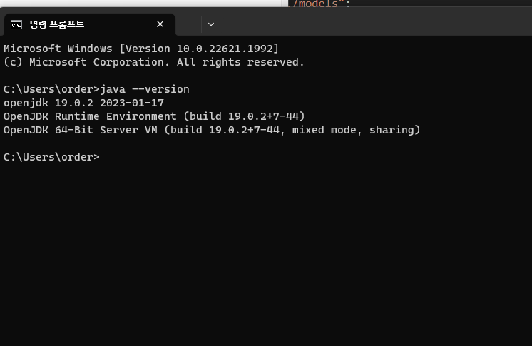 - CMD에 java --version 을 입력해 자바가 설치 되었는지 확인