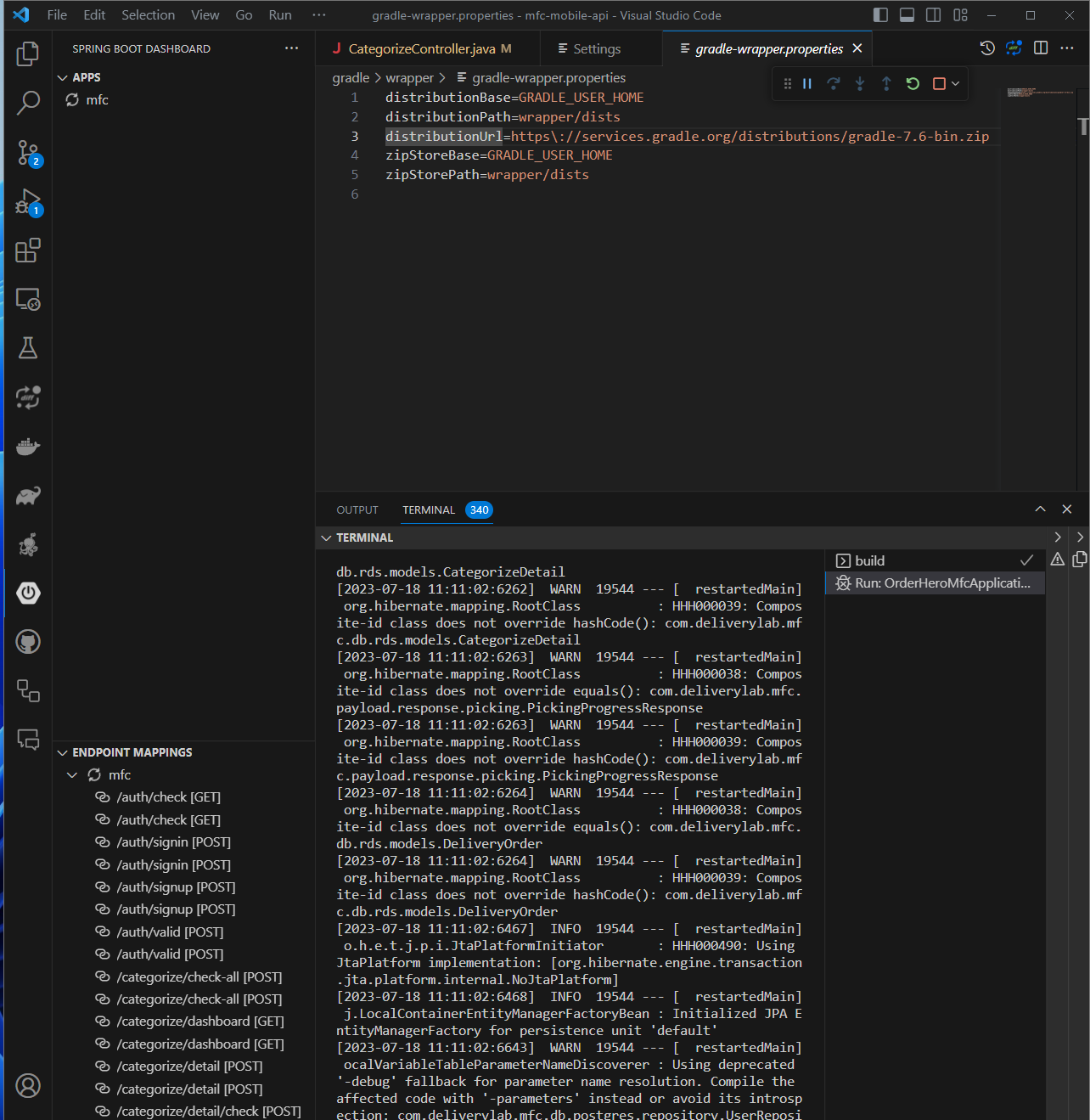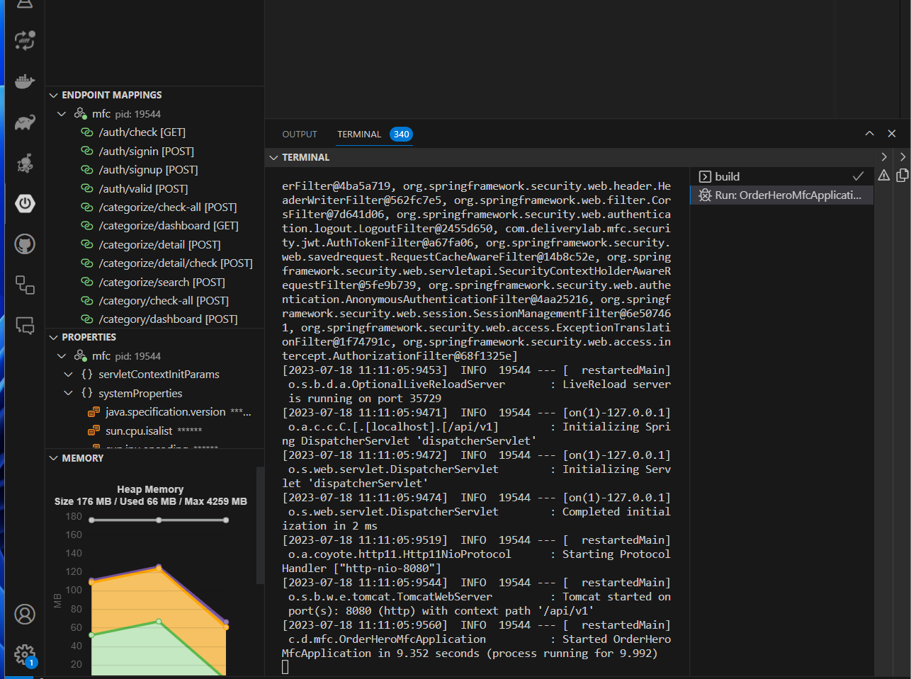 - 이제 VSCODE의 스프링 메뉴에서 mfc를 실행