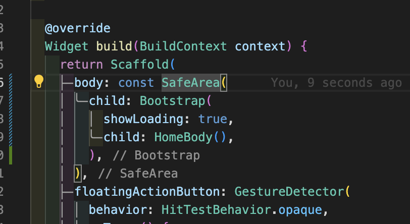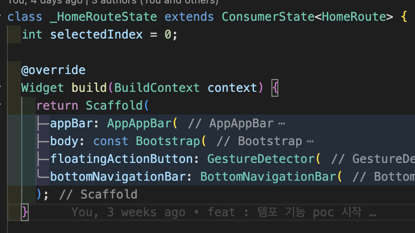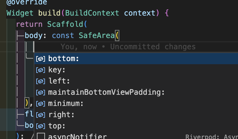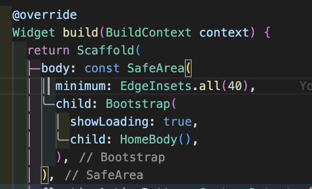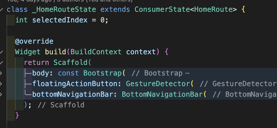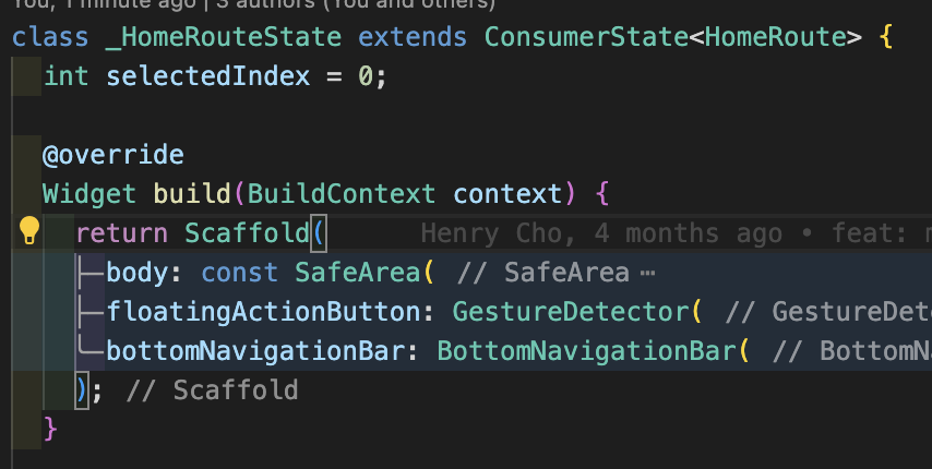 하지만 주의할 점이 있는데요. 가끔 Scaffold 위젯 밖에 선언하는 것을 확인할 수 있습니다.