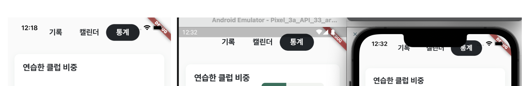 실제 예시에서도 알수 있듯이 안드로이드, IOS는 둘다 상단여백에 대한 침입이 있었습니다. 그래서 SafeArea를 추가한 순간 충분한 패딩이 생기면서 UI적으로 완성되었습니다.
