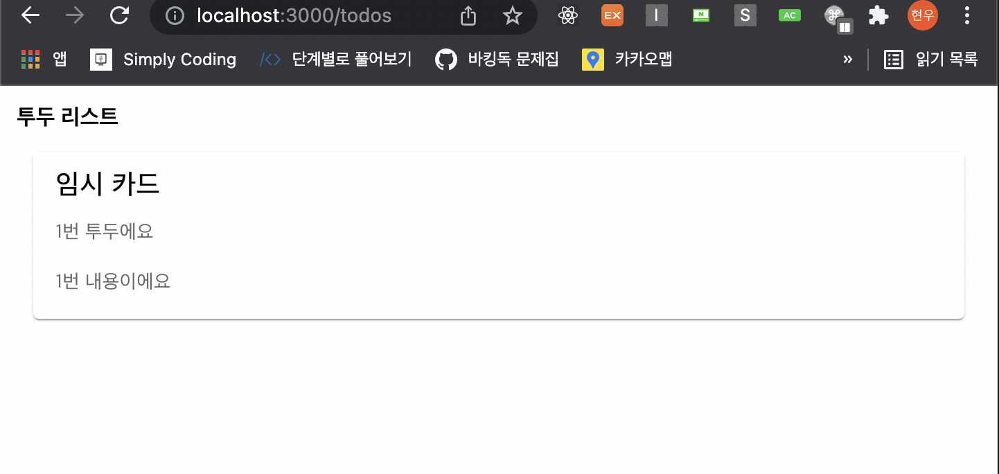 우리의 예쁜 투두리스트의 첫 카드가 만들어졌네요!