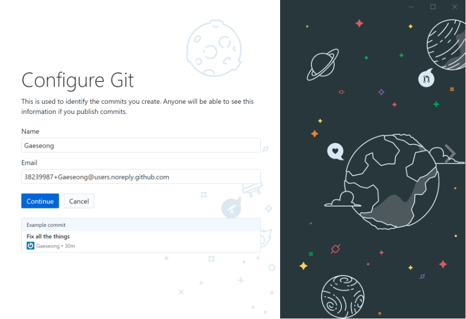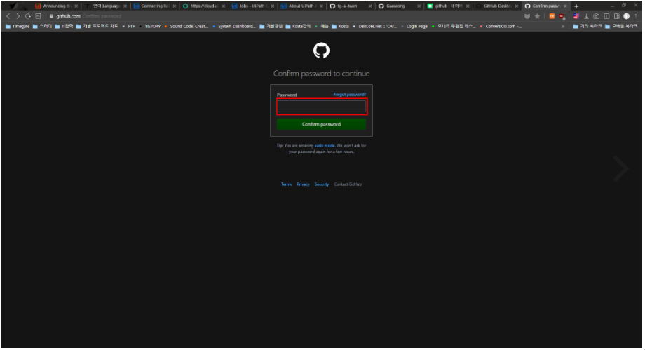 만약 안 떴다면 github.com 에서 회원가입 후 로그인 해주세요.