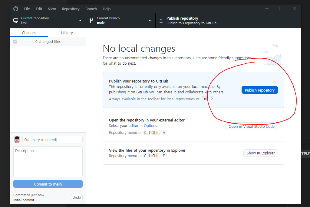 - 위에 동그라미 쳐진 Publish repository 버튼을 클릭해주세요.