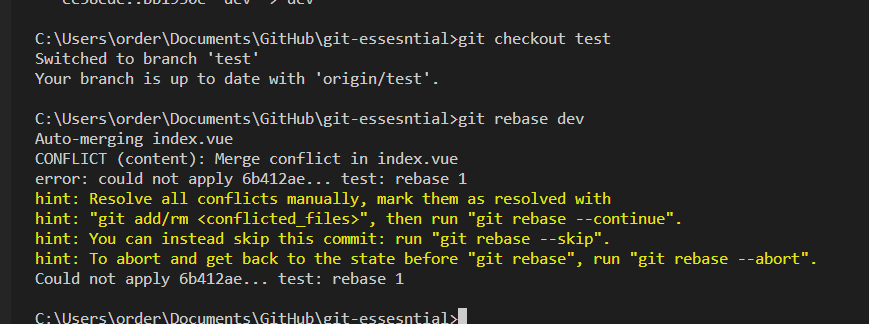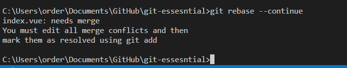 git rebase --skip # 현재 커밋은 건너뜁니다.